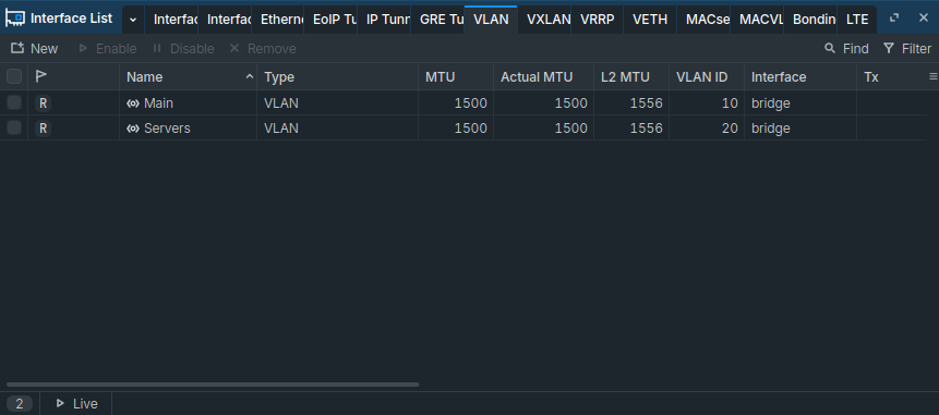 Then, I created the software interfaces for the VLANs, for easier management.